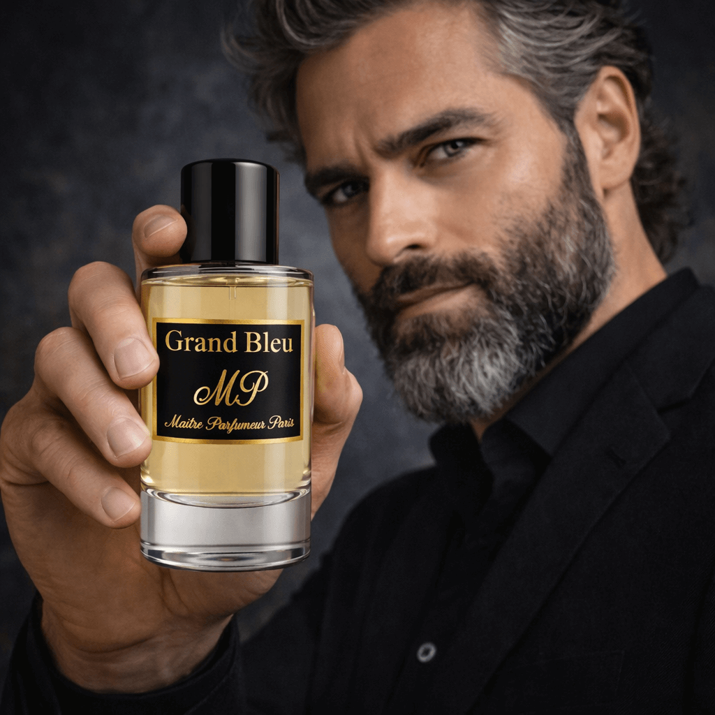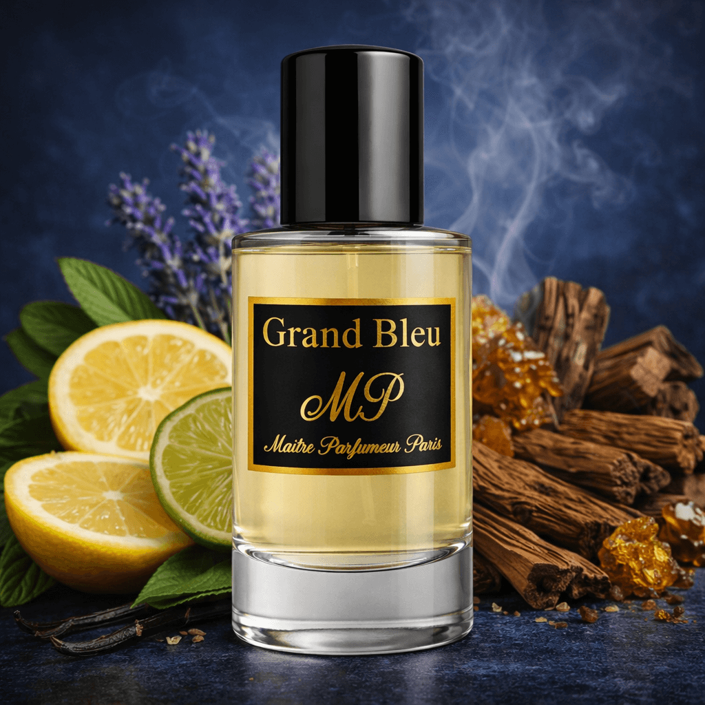 Succombez à l’univers sophistiqué de Grand Bleu, création exclusive de Maître Parfumeur Paris, inspirée de l’esprit Bleu de Chanel : une ouverture fraîche et lumineuse, un cœur aromatique élégant, et un fond boisé ambré maîtrisé pour une signature masculine, moderne et intemporelle.