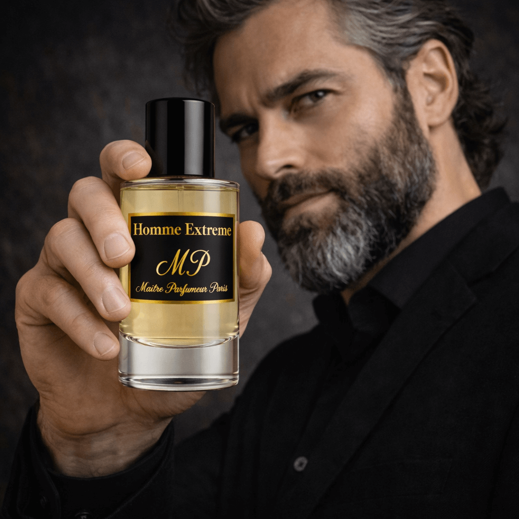 Homme Extreme révèle une élégance profonde et affirmée. Un parfum sensuel et sophistiqué, où la douceur poudrée rencontre une masculinité racée, pour une signature puissante et inoubliable.